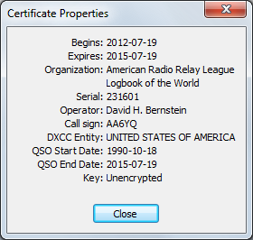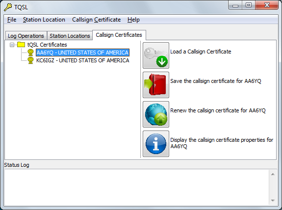 | 1. | Start TQSL and select the Callsign Certificates tab, which lists your Callsign Certificates. |