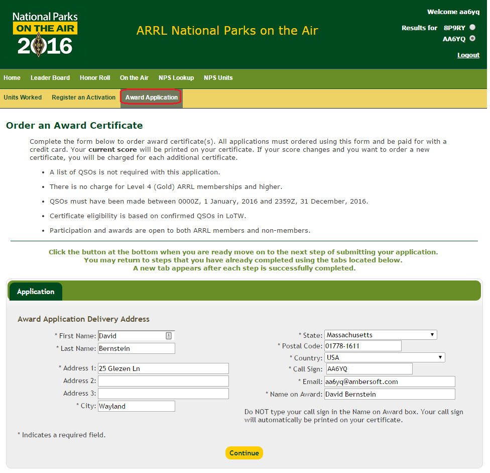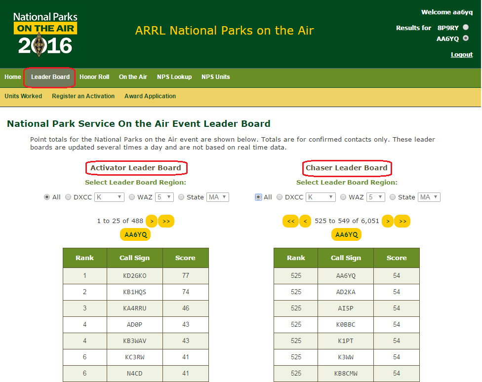 Viewing Your National Parks On The Air 2016 Activator and Chaser Point Totals