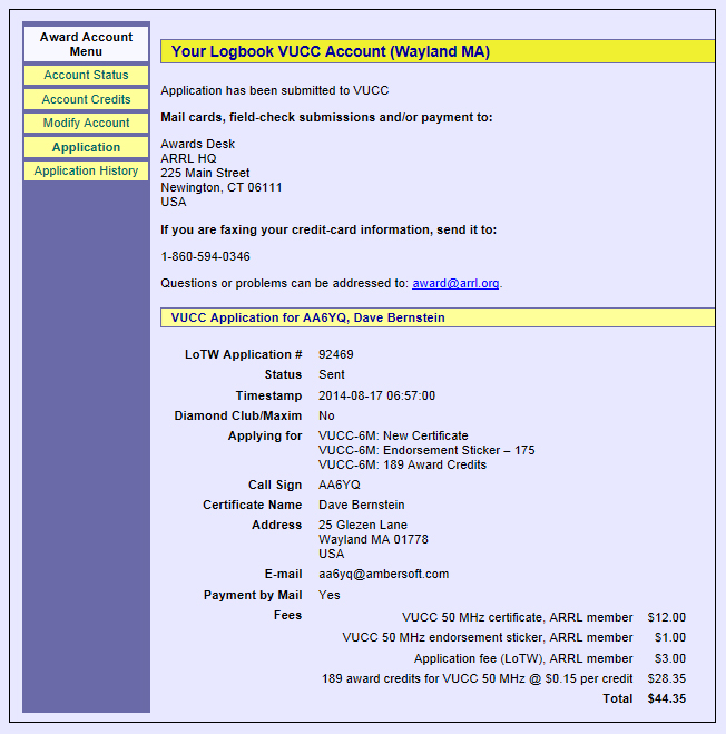 Viewing Your LoTW VUCC Account and Applying for VUCC Award Credit