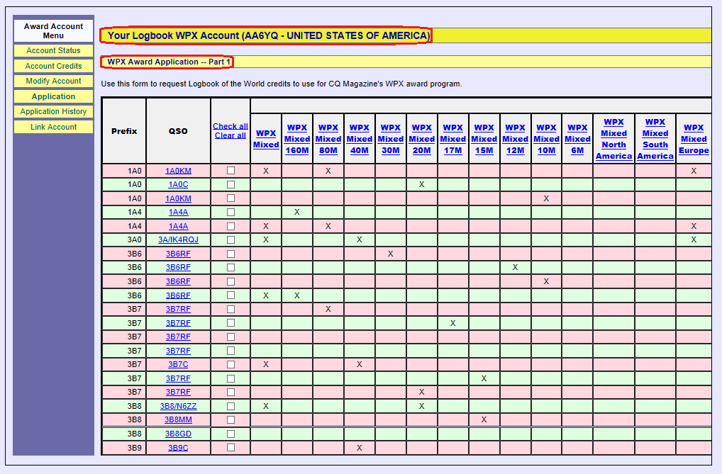 - View Award Credits in the WPX Record linked to an LoTW WPX Award Account
