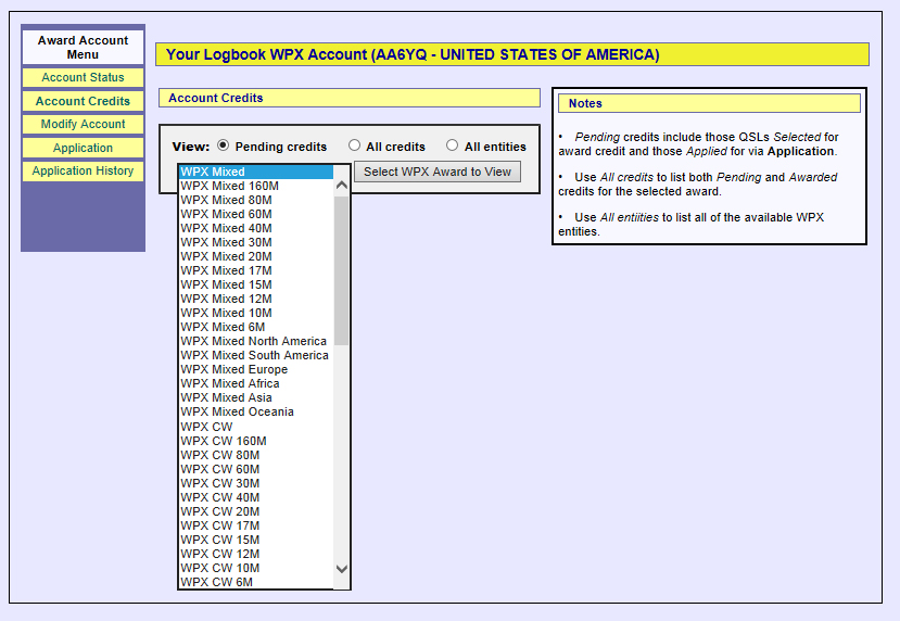 Viewing Your LoTW WPX Account and Applying for WPX Award Credit